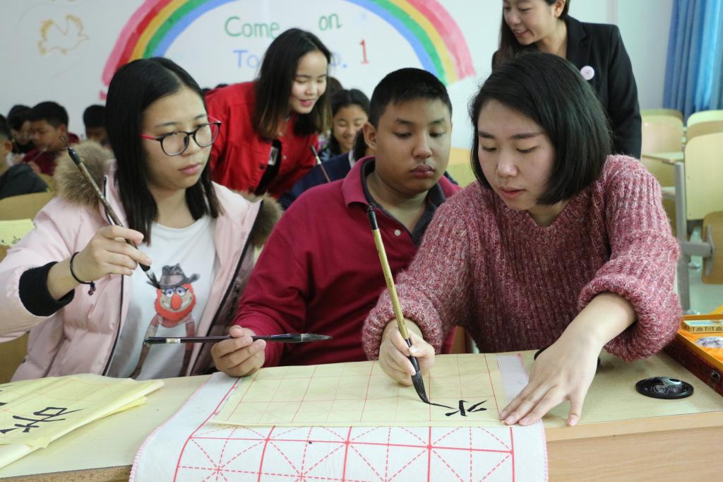 本次游学活动主要包括感受重庆城市文化,学习武术、书法、朗诵等中国文化课程。游学团抵渝当天,参观了重庆人民大会堂、三峡博物馆、洪崖洞,师生们感受了重庆的城市文化。第二天,公司在行政楼会议室举行了隆重欢迎仪式。随后,游学团的成员参观了公司的校园环境、教学环境。两校的领导进行了亲切的交流,初步达成了长远的合作意向。第三天,泰国学子走进课堂,学习武术课、书法课、朗诵课等课程,他们认真学习揣摩,对中华传统文化产生了浓厚的兴趣。第四天,泰国师生与公司志愿者开展了一场别开生面的趣味运动会。泰国员工和公司志愿者互相搭档、互相配合,在竞技过程中彼此的友谊也得到了深化。晚间,公司为帕东拉游学团举行了欢送晚会,泰国员工把几天游学的收获与大家分享,并表演了具有浓郁泰国风情的民族舞蹈。第五天,游学团结束了本次游学活动,在不舍中踏上了归国的路途。