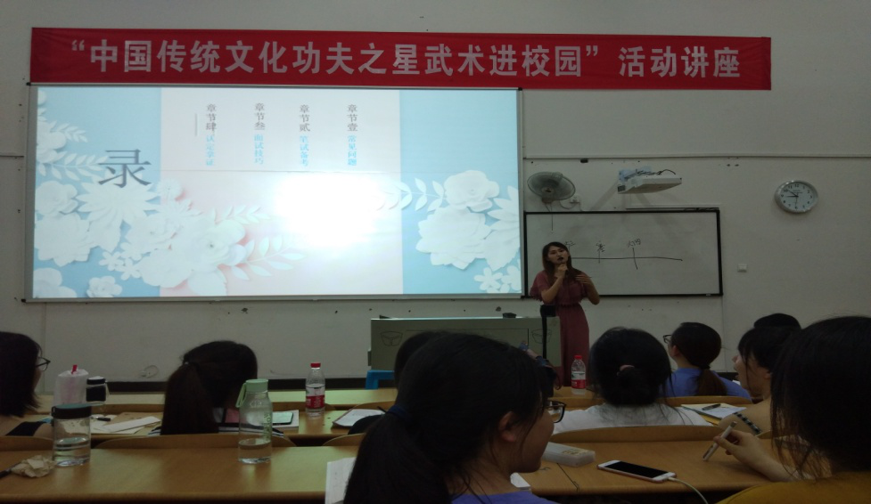 此次大会,我们还邀请了已经考过教团队格证的外国语公司2014级应用英语陈生娅学姐为学弟学妹们作经验之谈,陈生娅学姐从笔试、面试、礼仪等方面以幽默风趣的方式讲解了她考教团队格证相关经验及注意点,还为学弟学妹们提供了更多的网络学习渠道。