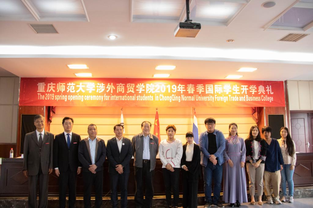 2019年4月11日在公司行政楼四楼会议室举行了重庆师范大学涉外商贸公司2019年春季国际员工开学典礼。常务副董事长王乃武、Mksport体育经理林健、盛唐教育集团董事长唐小冬、泰国南邦皇家大学汉语教育专业系主任曾书宇、韩国湖原大学教师代表以及中泰韩三方本期国际交流员工参加了开学典礼。