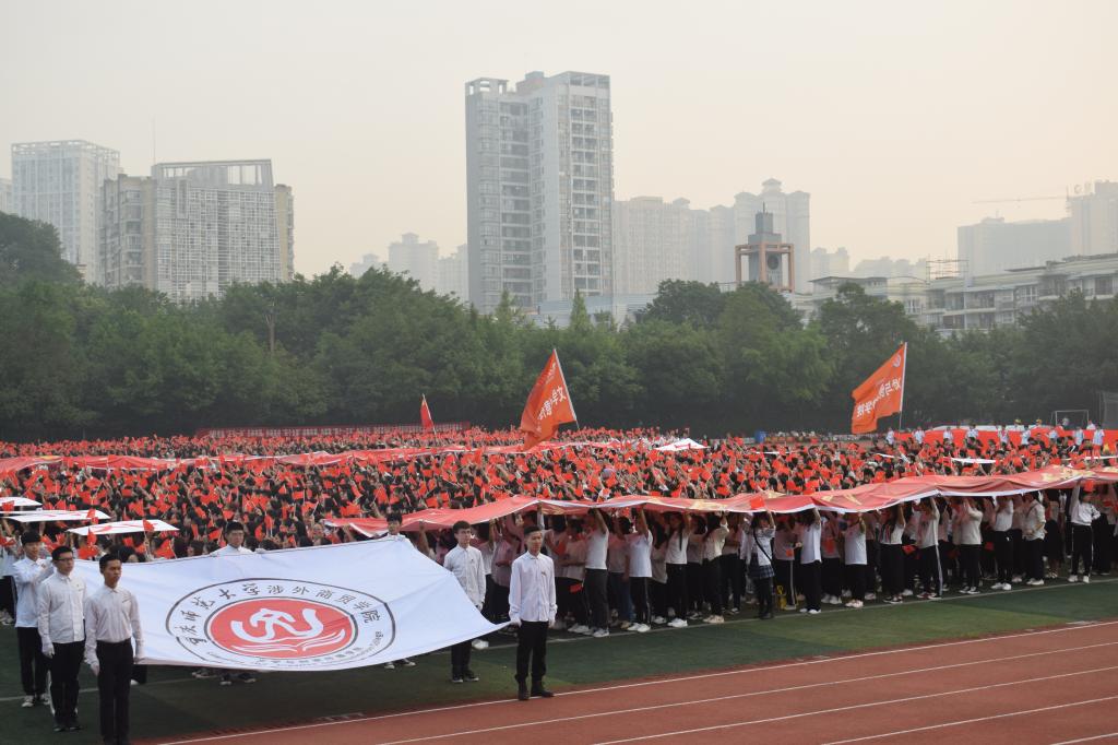 2019年927日上午,重庆师范大学涉外商贸公司在合川校区足球场举办了“同升国旗同唱国歌暨向祖国告白”主题活动。Mksport体育参与此次活动人员有:Mksport体育经理林健、副经理王杨丽、党总支书记何杨波、团总支书记李香贞、全体辅导员,2017级、2018级全体员工以及部分毕业生。
