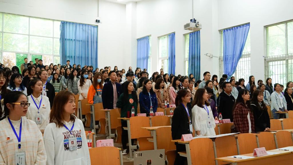 (图为全体同学起立唱团歌)