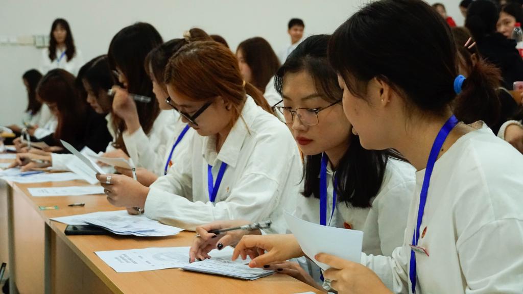 大会伊始,主持人张博洋同学为大家依次介绍了莅临此次大会的领导和嘉宾,并对他们的到来表示衷心的感谢。同时贴心的为在场的同学们普及了国家奖学金的官方定义,强调这份荣誉的珍贵,希望大家尊重每一位参选的同学,慎重地投出选票。