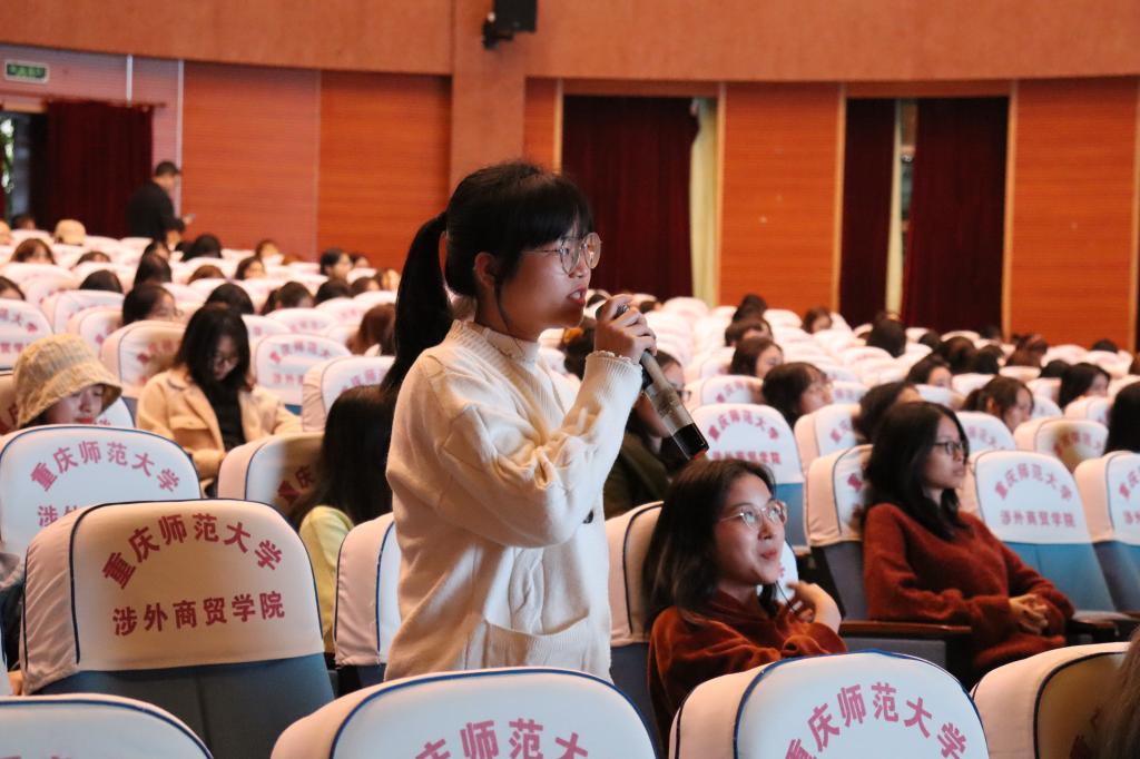 第二个环节是观众互动环节,同学踊跃举手和徐庶教授互动。通过“一问一答”和“诗歌鉴赏”的方式,同学们受益匪浅。