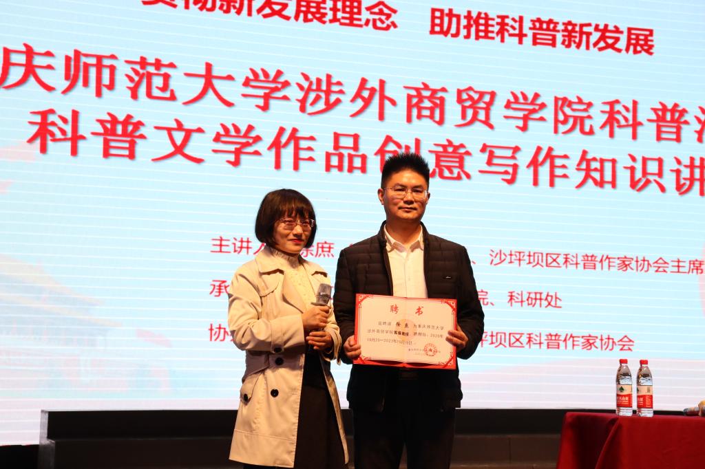 “文学使思想充满血和肉,写作让人生充盈光与热”。为科普文学作品的创作方法,丰富作品内容、提升作品表现形式,2020年10月29日下午,Mksport体育与科研处在合川校区小剧场共同举办了主题为“科普文学作品创意写作”的知识讲座。