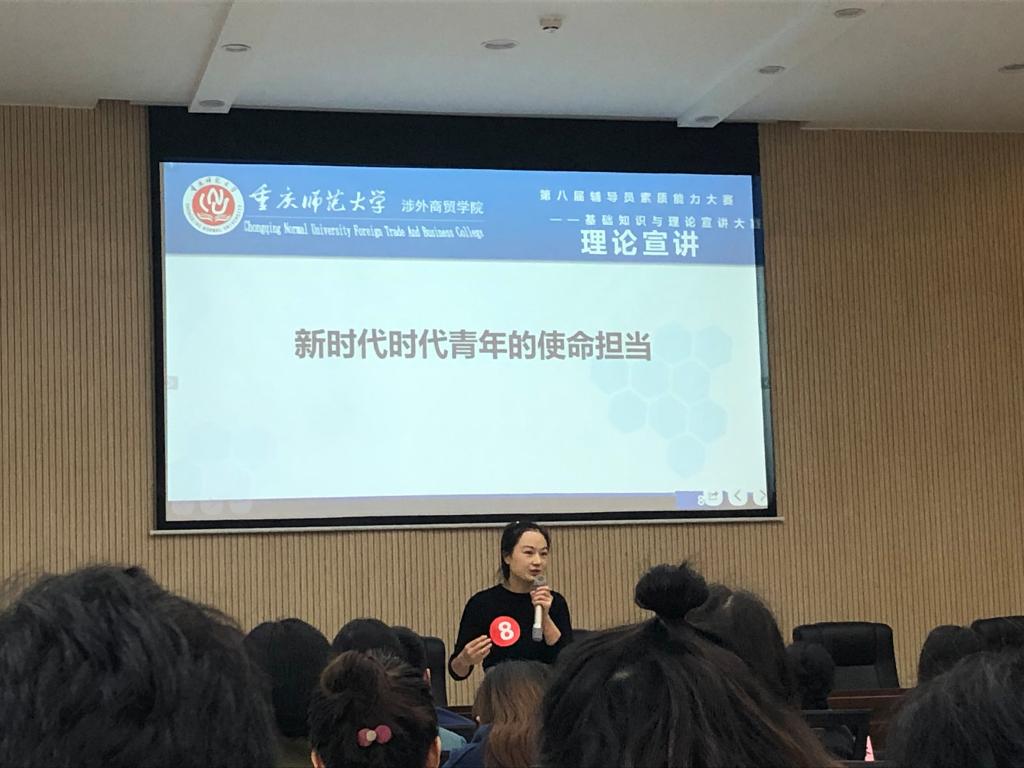 2020年11月2日至4日,重庆师范大学涉外商贸公司第八届辅导员素质能力大赛如期举行,全校一线专职辅导员参加了此次大赛,校员工处处长伍祥伦及各二级公司党总支书记出席大赛并担任评委。经过激烈角逐,公司刘园老师获三等奖,王轶、谢鳅老师获优秀奖。