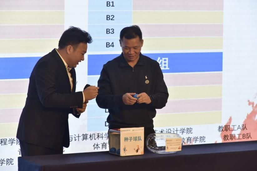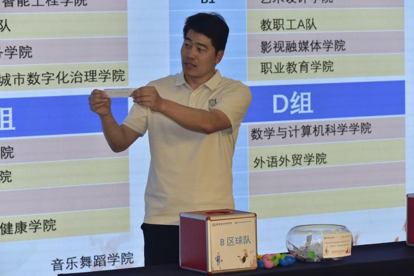 随后,跨境商务公司曾继鹏老师主持抽签仪式,由在场领导分别为男子篮球A、B、C、D组,女子篮球A、B组进行抽签分组,现场气氛热烈、激情四溢。