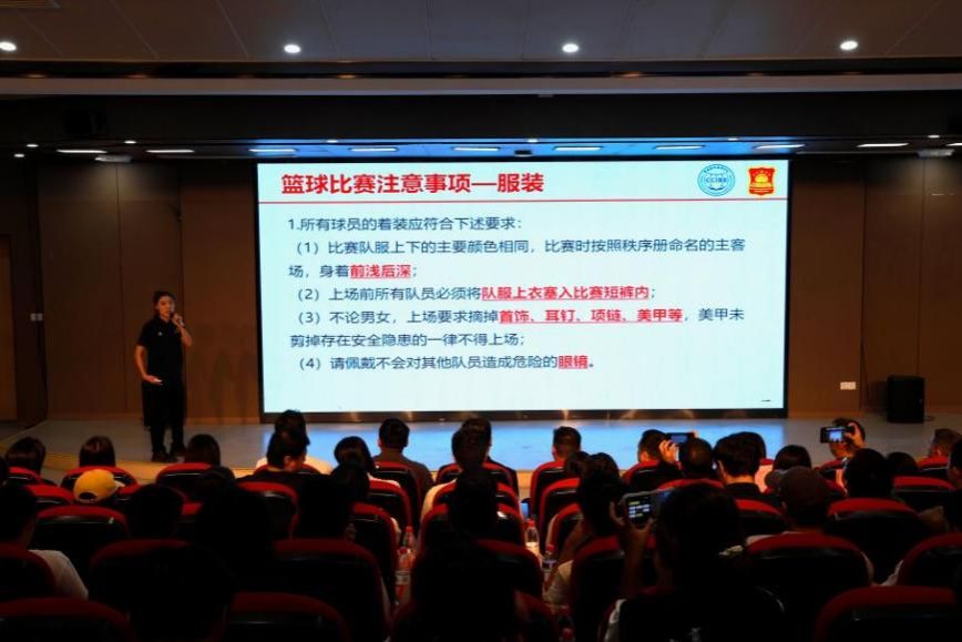会上,跨境商务公司张益豪老师解读本次比赛的赛程安排,对比赛规则、参赛人员、安全事项以及奖项设置进行细致讲解。裁判长于茜端老师讲解比赛规则与判罚标准,对服装要求、赛场管理、最新裁决要求、违例情况、犯规类型作出详细说明。
