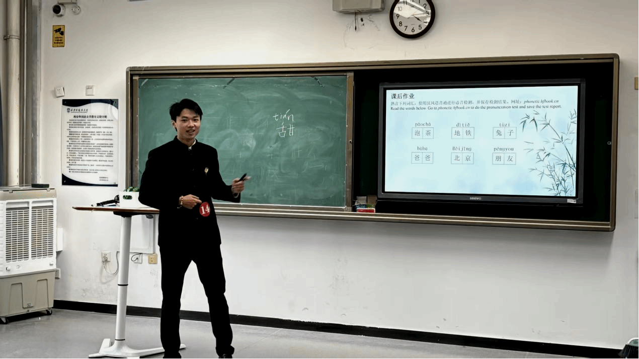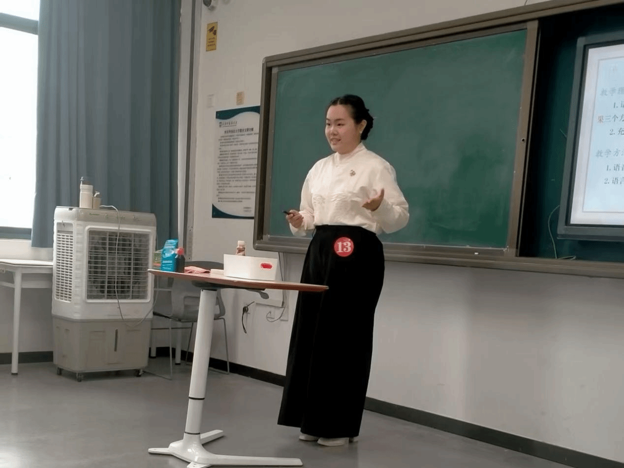 图为2024级汉语国际教育专业李瑾昊赛课
