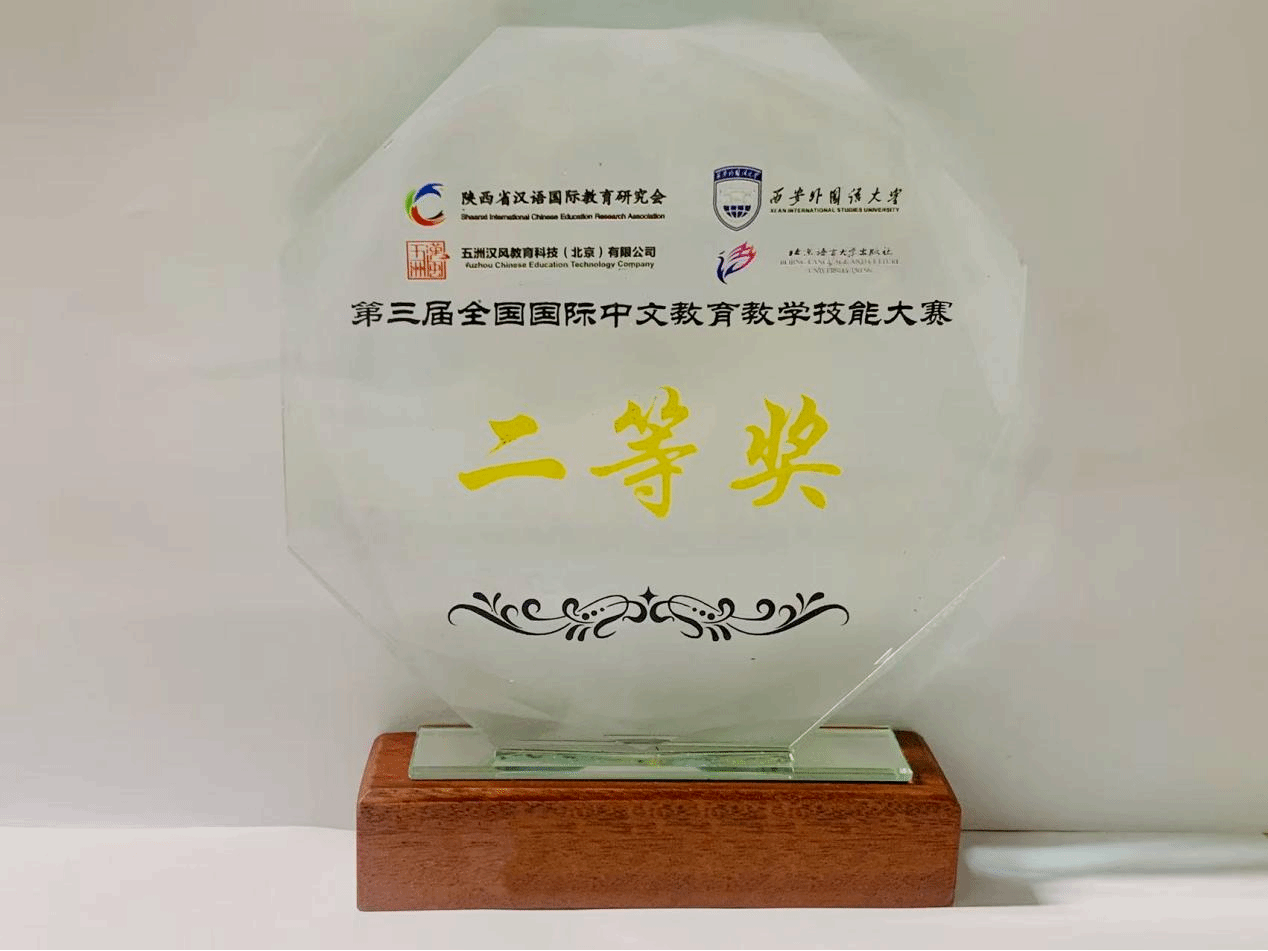图为第三届全国国际中文教育大赛奖杯