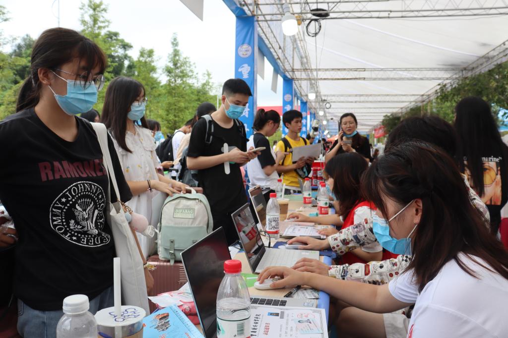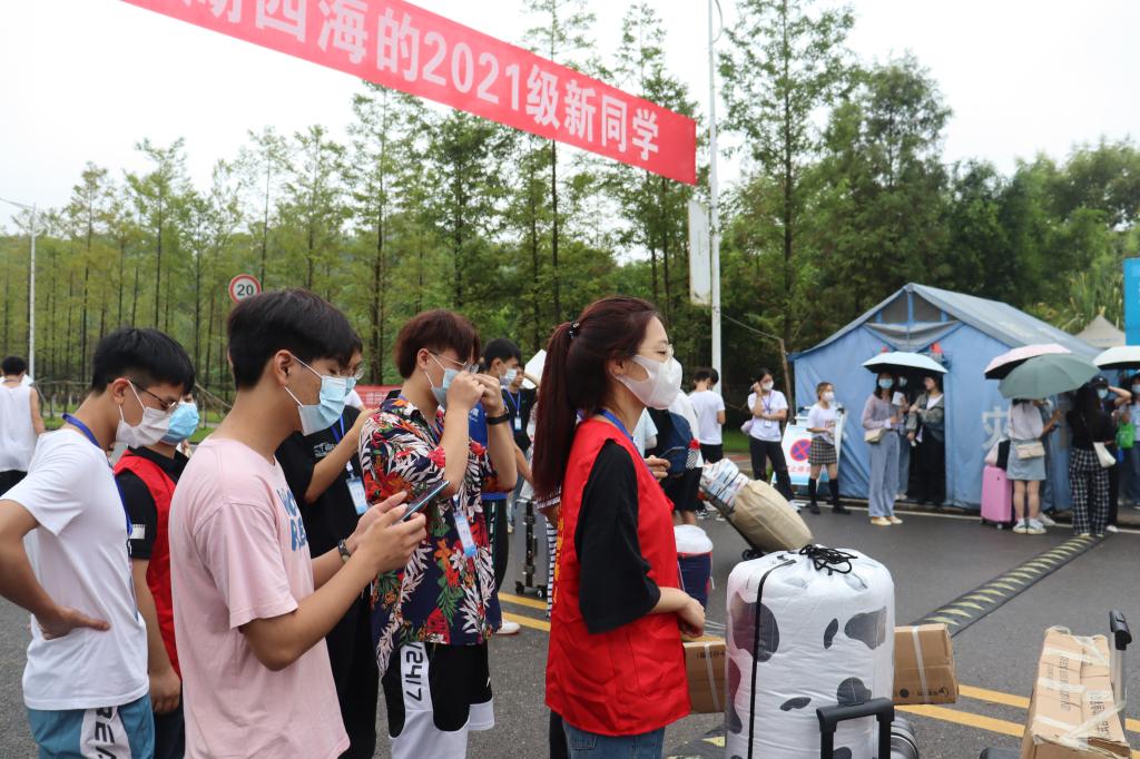 晨光熹微,迎新团成员踏上迎新的征程,在迎新棚为新生们设置了报名地点。经过上午的各项准备,当天下午1:00迎来了公司第一位前来报到的2021级文创新生。此次迎新活动分为校外与校内迎新,校外的学长学姐们等候于重庆北站、江北机场、菜园坝等各大站点,负责引领新同学们坐上前往公司的大巴。负责校内迎新的学长学姐们则高举Mksport体育的竖牌,在校门口等候着同学们的到来,带领新同学们到报到点处报到。