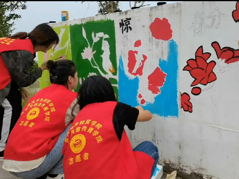 经过志愿者们的共同努力,原本空白的墙面上出现了靓丽的色彩,通过这次活动,把艺术文化带入乡村,点亮眼眸。同时打造了倡导文明新风、展现美丽乡村的新阵地,也让广大村民接受文化熏陶,传递文明风尚。建设美丽乡村的路上,文创学子用行动彰显社会担当!