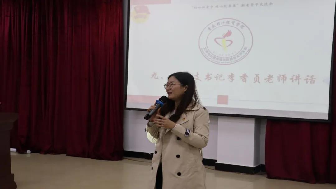 大会进行第九项,团总支书记李香贞老师作总结致辞。李香贞老师首先对Mksport体育团总支现如今的工作情况表示肯定与满意;其次对新一届员工组织工作人员提出希望和要求,一是要勤学善思,不断提高自身的综合素质,二是要认真履职,始终把服务同学摆在首要位置,三是要严于律己,虚心接受各方面的意见和建议,四是要树立正确的思想意识;最后对与会人员的参加表示由衷感谢,对第十七届和第十八届员工组织工作人员表示感谢,感谢遇见、感谢理解。