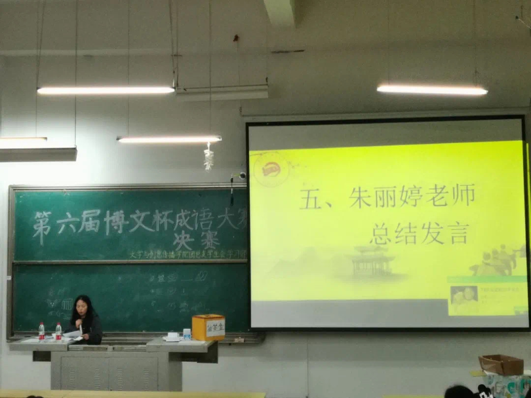 比赛渐渐接近尾声,朱丽婷老师对活动进行了点评,同时对同学们寄予了殷切希望。本次比赛让同学们更加了解成语,也激起了文创学子对成语的热爱。作为新时代青年,我们应从此地出发,传诵经典,展露风华!