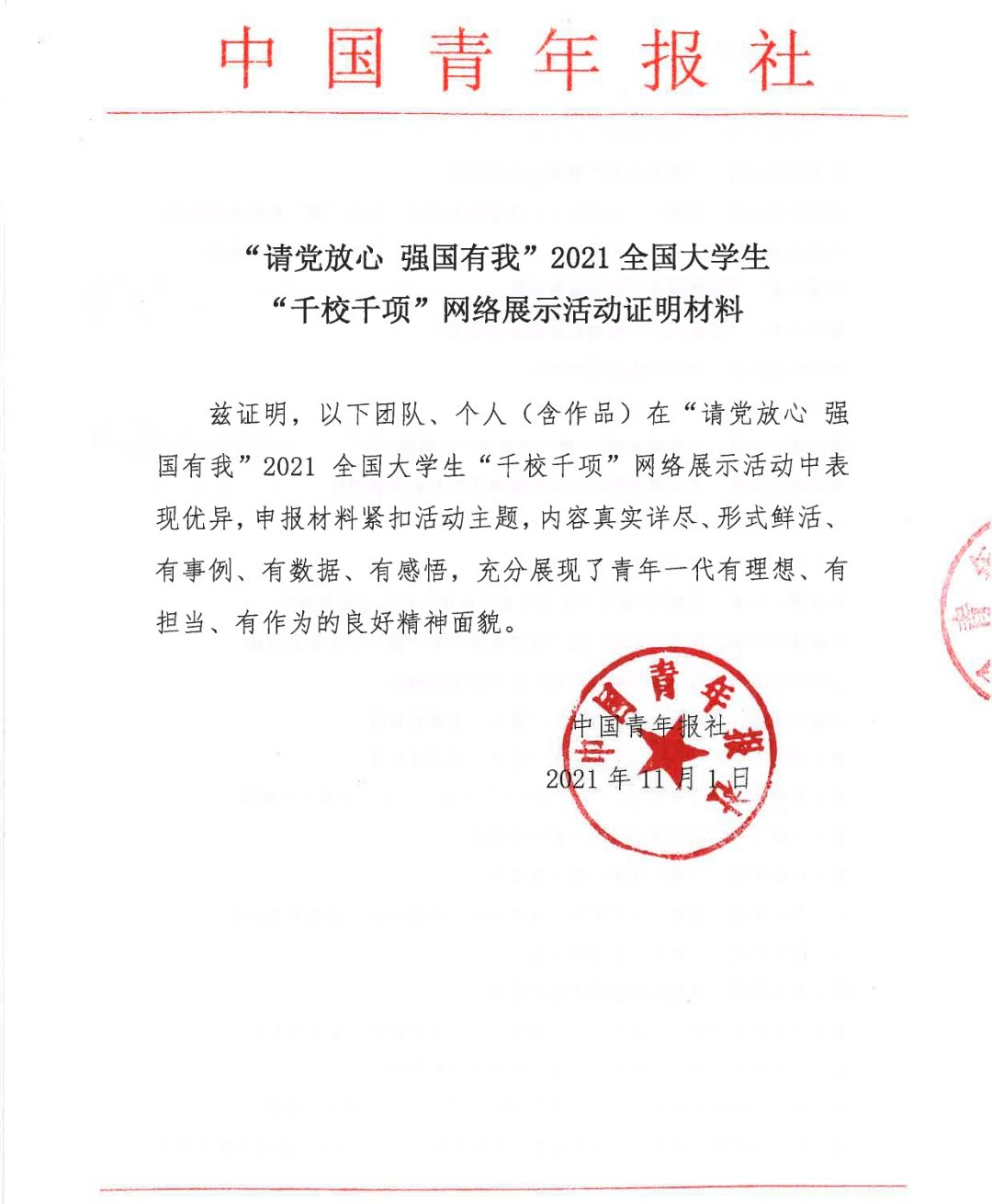 活动由团中央青年发展部、中国青年报、中国青年网共同举办,经过报名审核、作品发布、网络展示、综合评审等环节,遴选出200个优秀组织单位、200支优秀报道团队、200支优秀摄影团队、200支优秀视频团队、192名优秀指导教师、189名优秀通讯员。