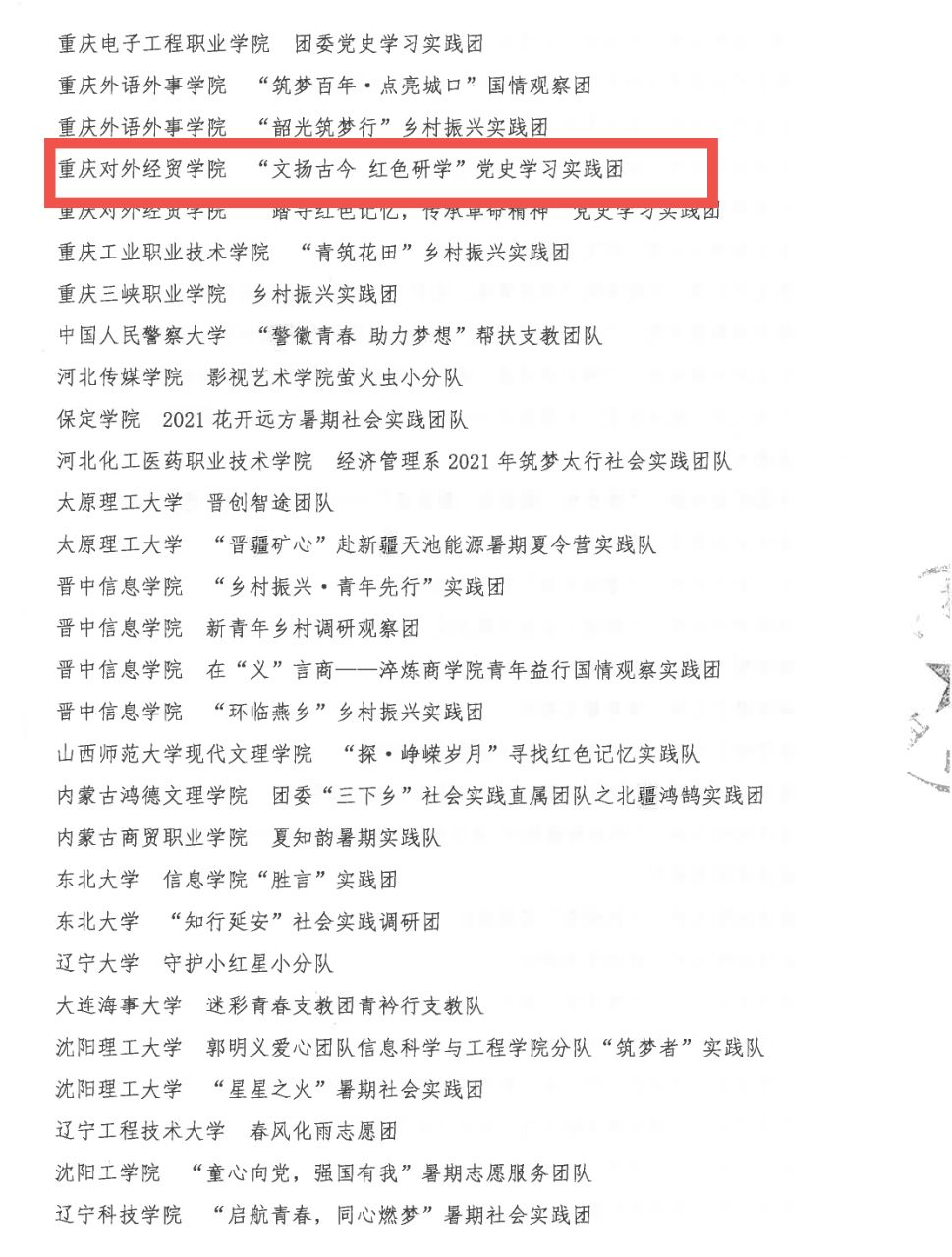 2021年7月11日,Mksport体育“文扬古今 红色研学”党史学习实践团走进重庆市潼南区双江古镇,开展了为期11天的社会实践活动,实践项目涉及党史学习、乡村振兴、传统文化等多个板块,实践团一路披荆斩棘,目前斩获四项国家级奖项。
