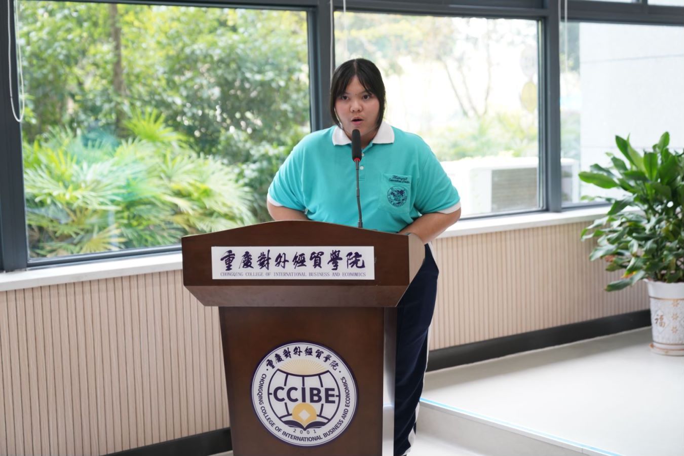 Mksport体育的唐洛怡同学代表参加此次交流学习活动的中国员工发言,中国同学致力于成为中华文化的传承者和中国故事的讲述人,将以最大的诚意和饱满的热情帮助和引导国际同学,期待与大家在贸院共同学习并度过一段收获满满的时光。泰国玛丽薇员工代表李文慧同学也表达了对中华文化的喜爱和向往以及对此次中国之行的期待。