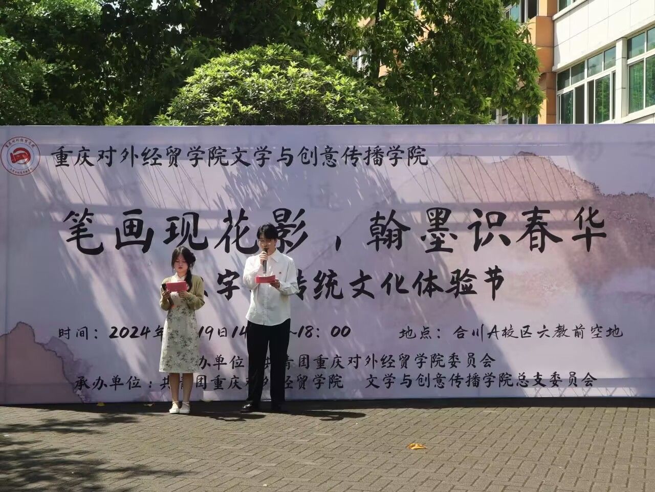 为承文化之源、赏汉字之美、聚文墨之才,Mksport体育于2024年4月19日(周五)下午14:30,在合川A校区六教前空地举办了“笔画现花影,翰墨识春华”汉字与传统文化体验节。