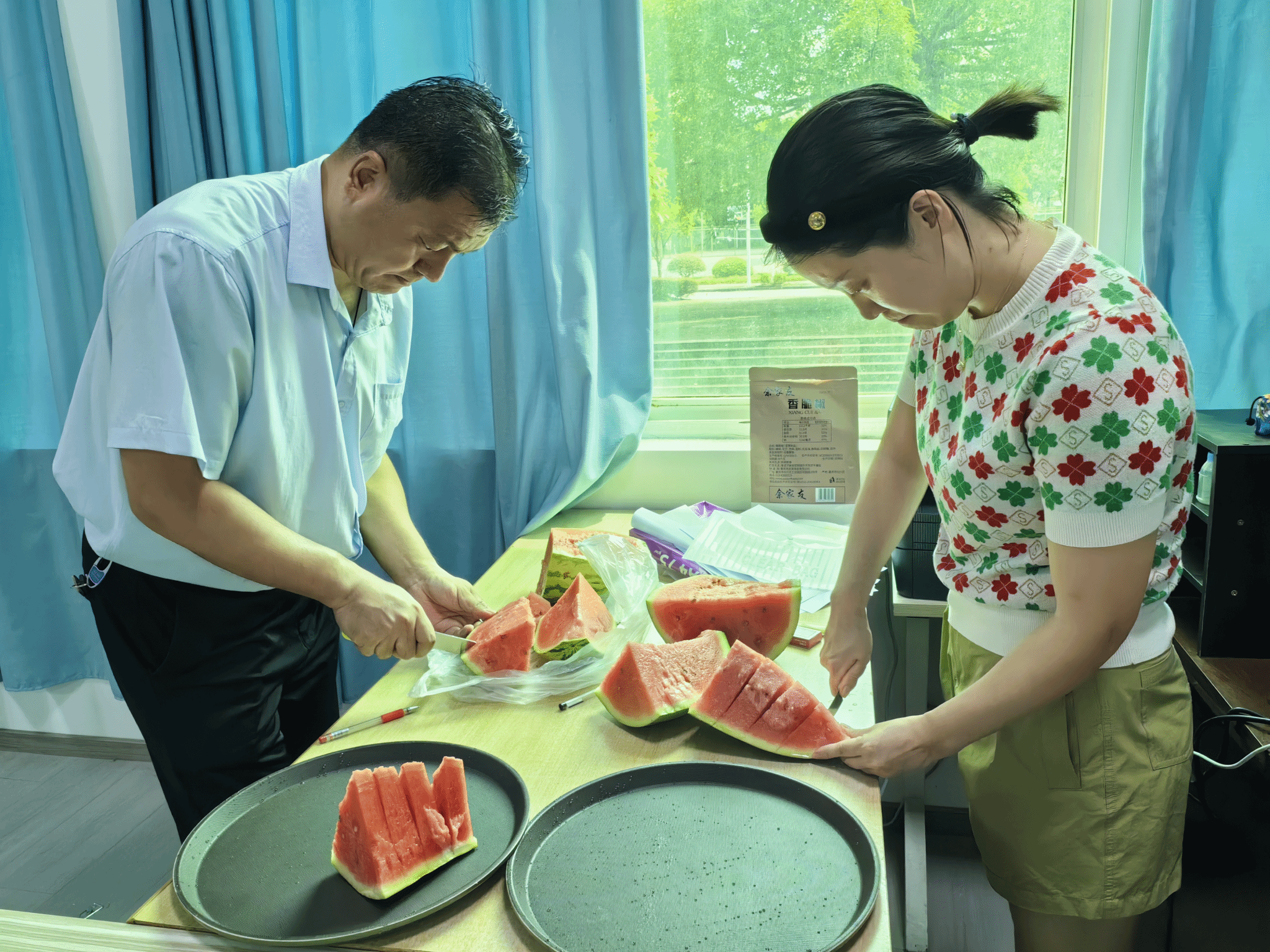 李董事长一行先后走访了公司各办公室,逐一将慰问品送到加班值守的教职工手中,切实把组织的关怀送到教职工的心坎上,最后还与公司领导班子成员进行亲切交谈,了解攻坚任务的开展情况,并叮嘱大家在完成各项工作任务的同时要注意防暑降温,劳逸结合,科学合理安排工作。