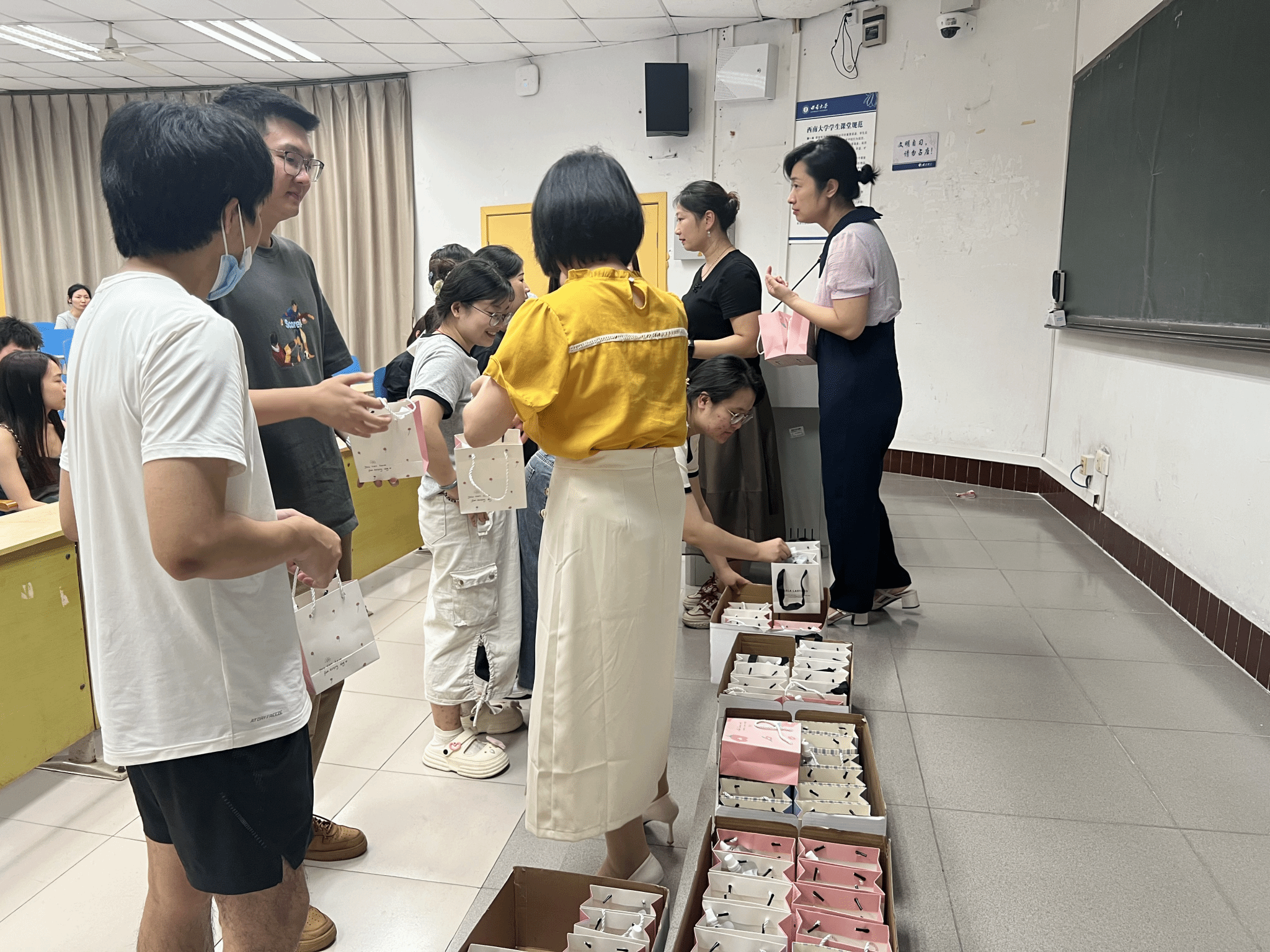 公司为老师们分发慰问品