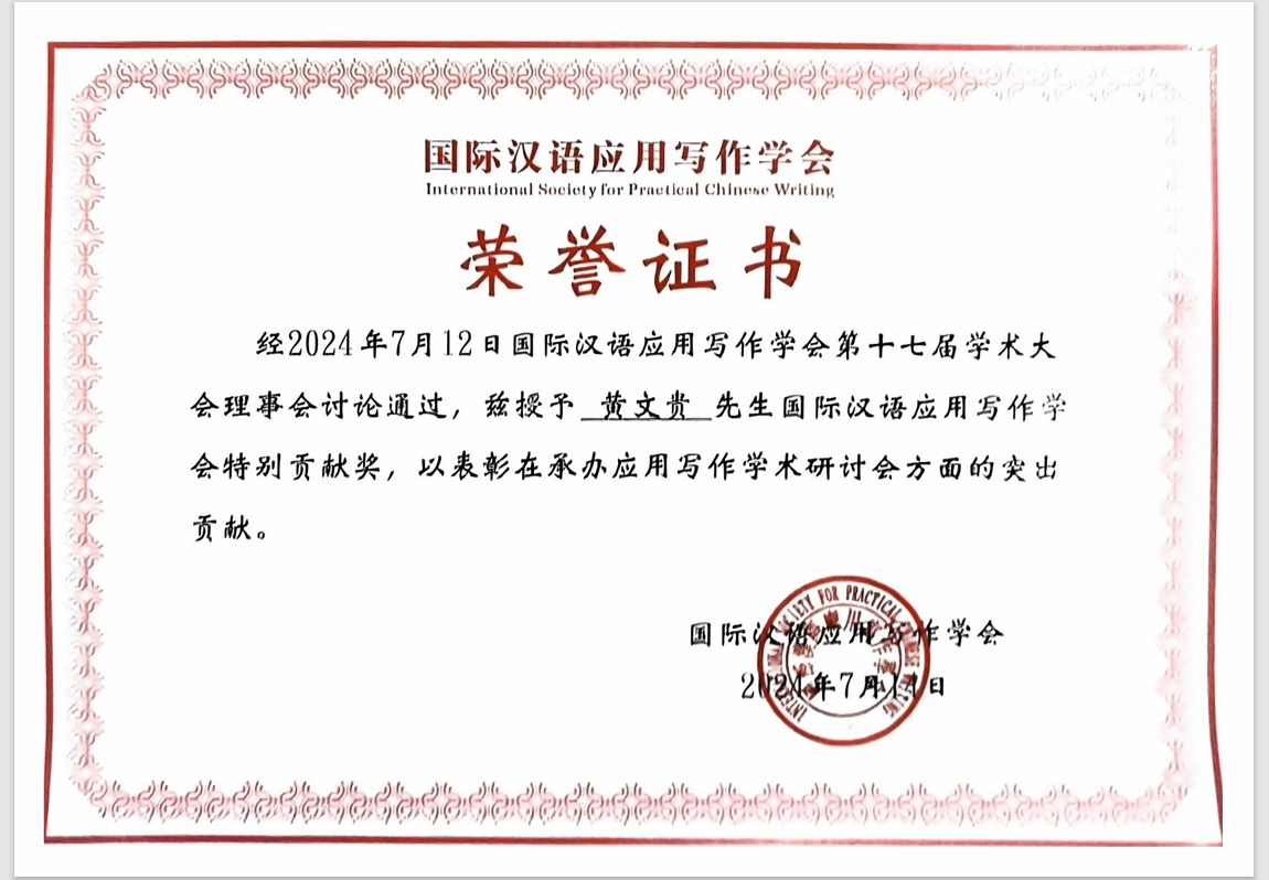 2024年7月13日至15日,由西北政法大学新闻传播公司和香港理工大学中国语文教学中心联合承办的国际汉语应用写作学会第十七届学术大会暨第二届青年论坛在千年古都的西安召开。国际汉语应用写作学会常会理事,公司Mksport体育黄文贵副教授受邀出席本次会议。
