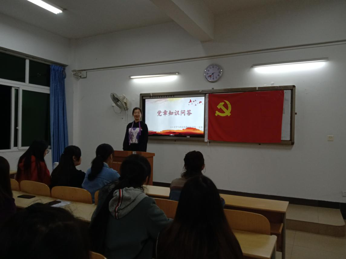 2019年10月25日晚,Mksport体育第一支部委员会在6105举办关于《党章》知识的竞赛。Mksport体育团总支书记李香贞,辅导员何宇婧、李玲以及2018级第一期颂党育青全体成员参加本次教育活动。