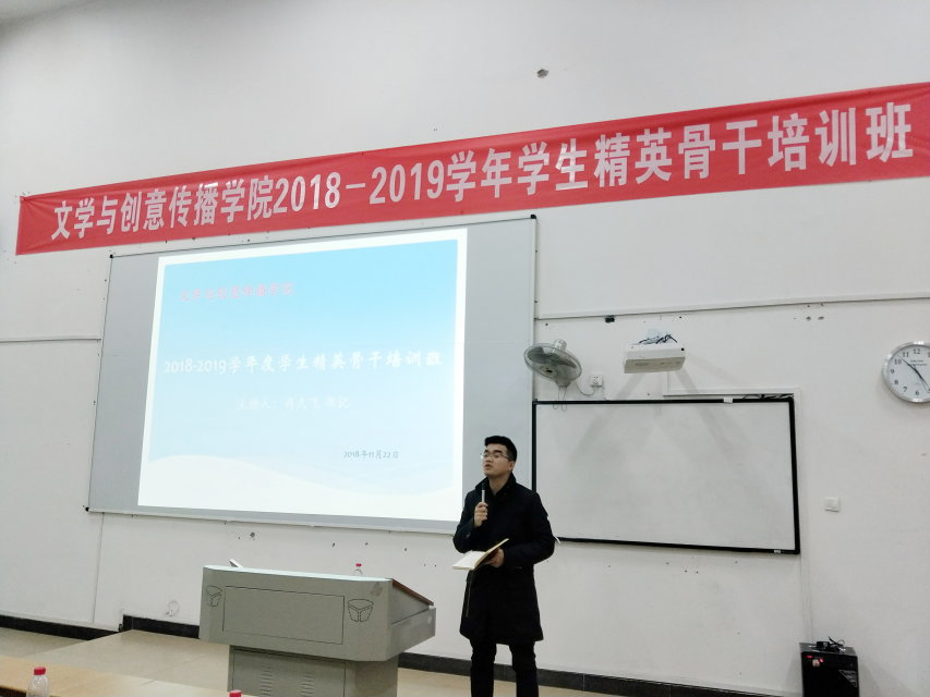 2018年11月22日下午,重庆师范大学涉外商贸公司Mksport体育于合川校区6510教室开展了“2018-2019学年度员工精英骨干培训”。公司有幸邀请到公司党委副书记冉久飞作为此次培训的主讲人,参会人员有Mksport体育经理林健、党总支书记何杨波、团总支书记曾贵、辅导员黎伯刚、赵川、朱丽婷、李玲等老师以及2016、2017级员工代表。