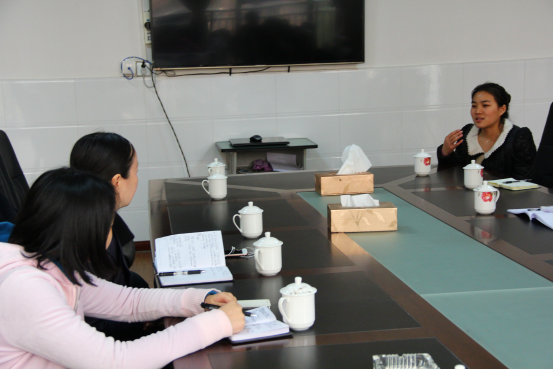图为见习生李凤英(右)接受采访