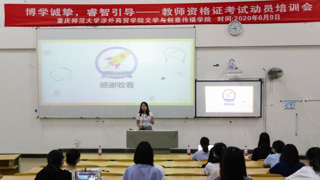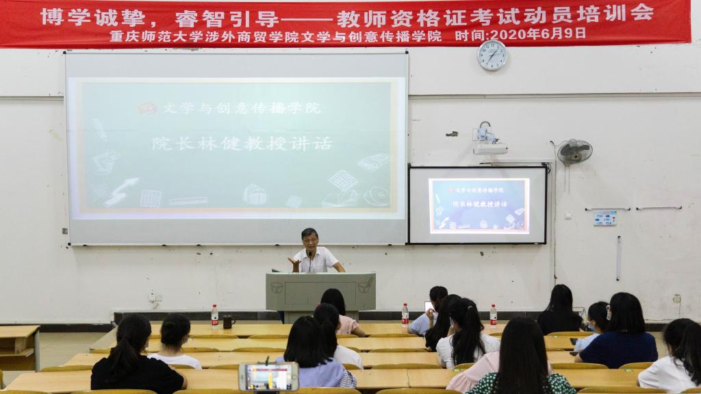 为加强公司师范生专业学习,提升师范生专业技能,理性高效地面对教资考试,2020年6月9日晚,在合川校区6116教室举行了教团队格证考试动员培训会,Mksport体育经理林健教授、副经理王杨丽副教授,教师教育部主任彭品荣副教授、教师刘修容、江霞以及2018级员工代表参加了此次培训会。