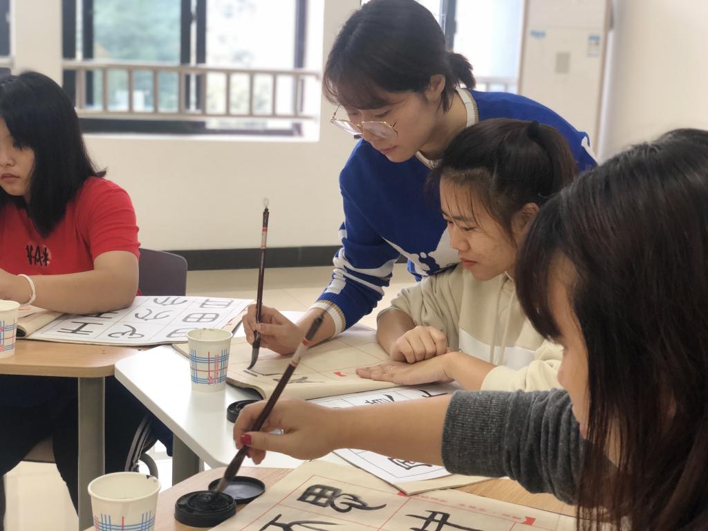 2019年10月15日下午,为了使泰国玛丽薇游学师生更好地了解中华传统文化,体会传统书法艺术,重庆师范大学涉外商贸公司于9516教室开展了中华文化特色体验课程——书法课