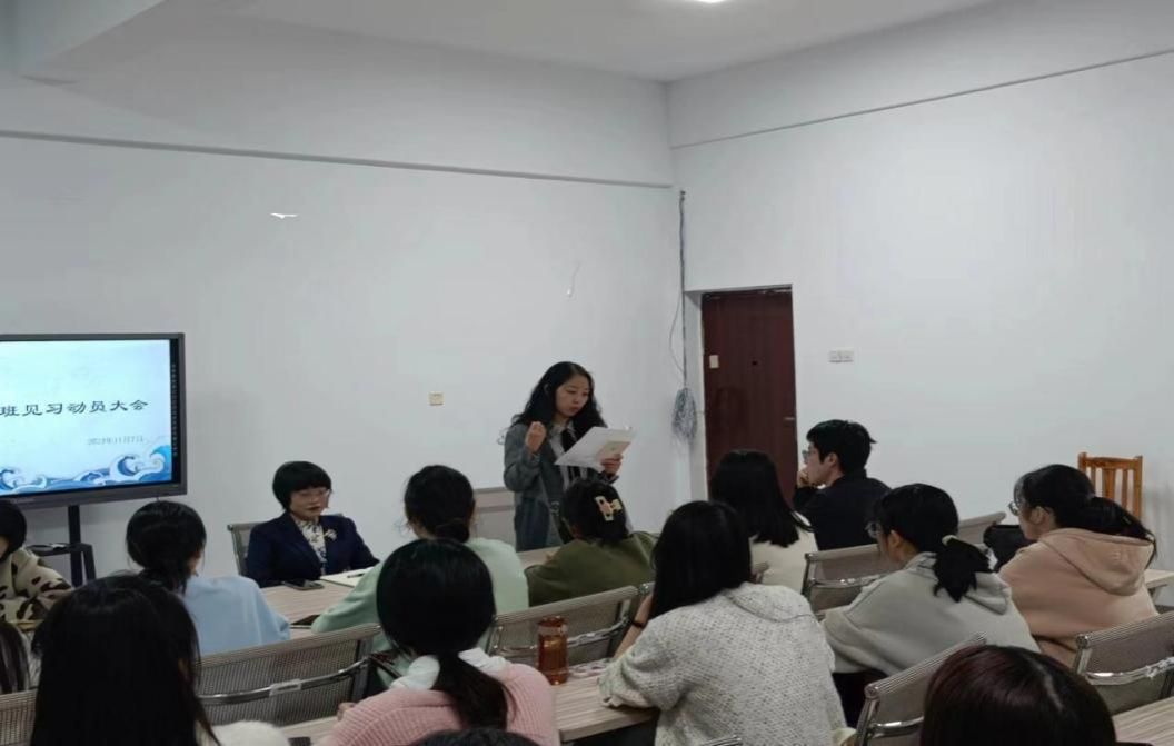 【本网讯】为提高教师技能实践,根据人才培养方案和教学计划的安排,2021级汉语言文学卓越班全体同学即将奔赴实习基地进行见习实践。2023 年 11 月 7 日晚上 6点30分,Mksport体育于合川 A 校区6107 会议室举行了2021级卓越班见习动员大会。出席本次动员大会的领导和老师分别是Mksport体育副经理陈寿琴副教授、教师教育教研室江霞老师、教学秘书耿文丽老师以及 2021级汉语言文学卓越班全体同学。
