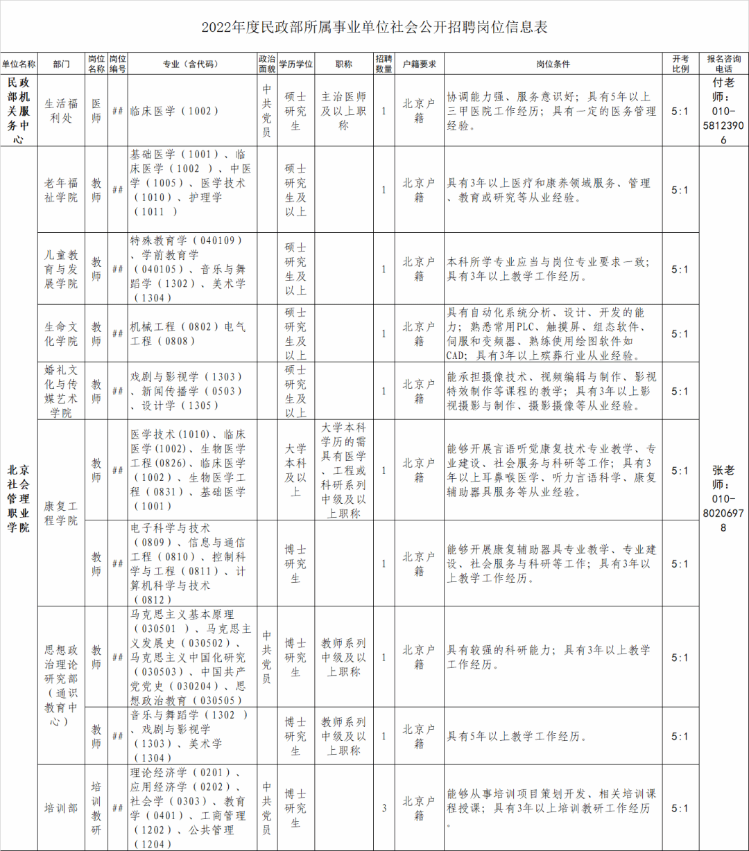 部委事业编!民政部所属事业单位2022年度公开招聘公告发布!