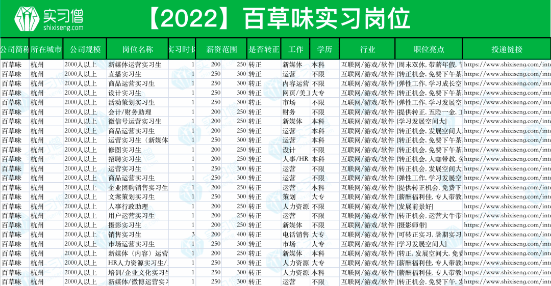 百草味实习生招聘