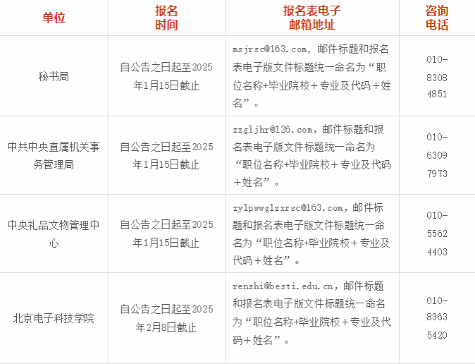 2. 请按要求填写固定电话和手机号码,并保持通信畅通。如手机装有安全软件对未知号码进行屏蔽,请取消设定。监督举报电话:010-63094219。本公告由中央办公厅人事局负责解释。