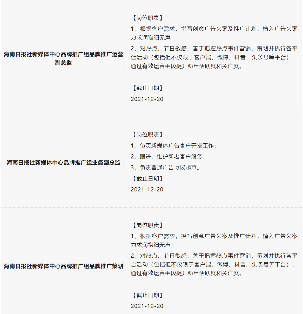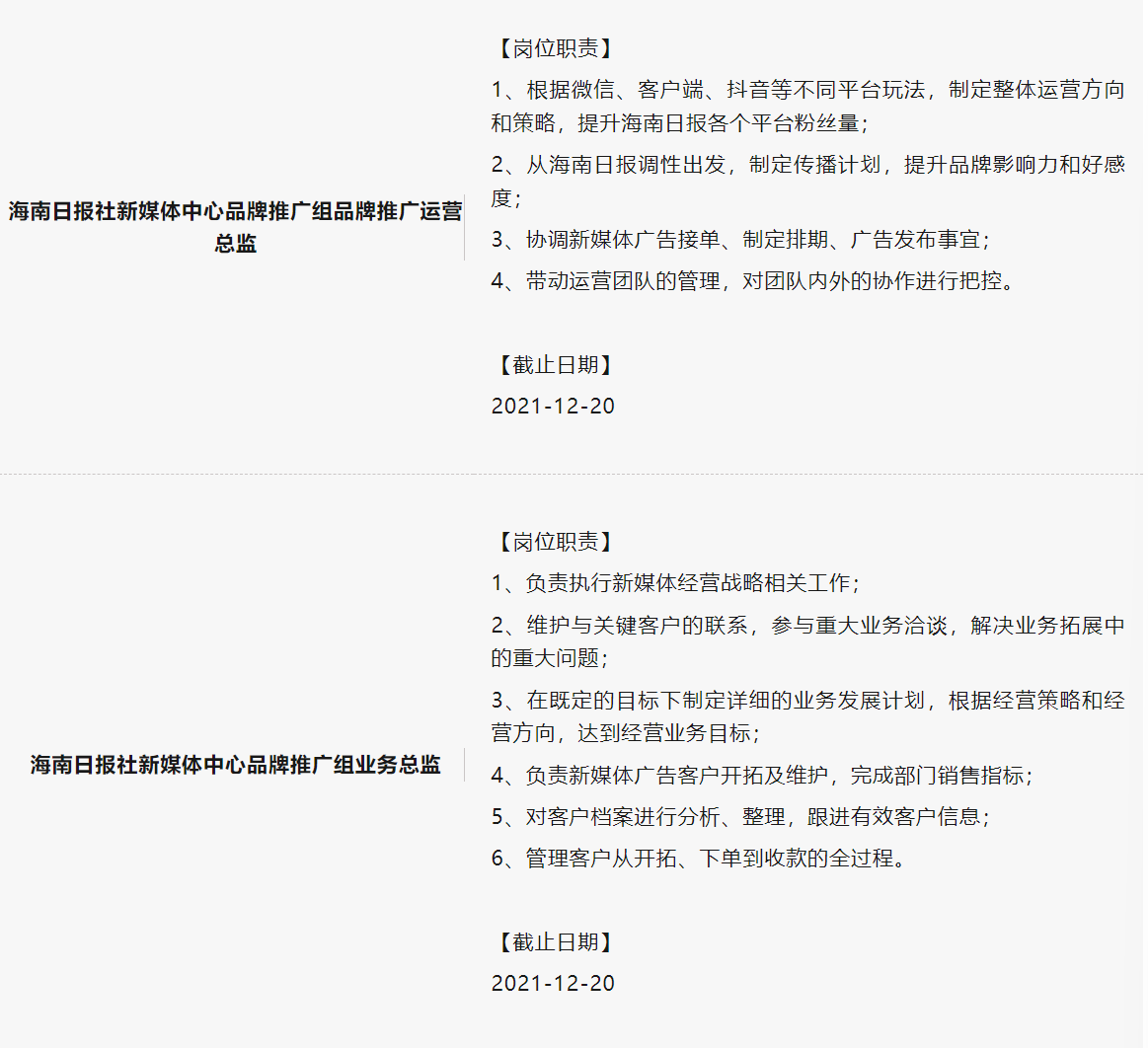 海南日报社最新社招岗位不容错过!