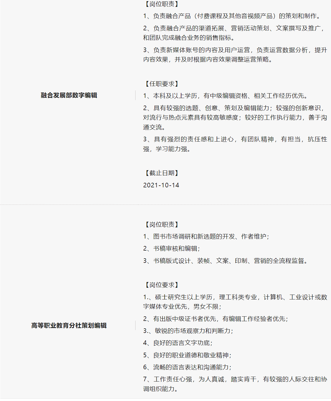 1.本网站刊载此文,旨在公益性为毕业生分享传递就业渠道并无营利性质使用。