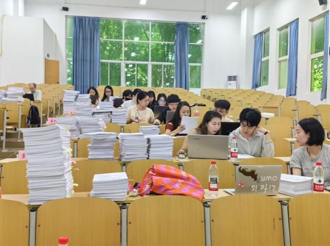 图为语文卓越教师班选拔面试、打分、手工艺品展示
