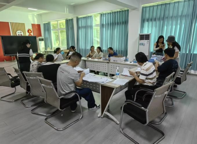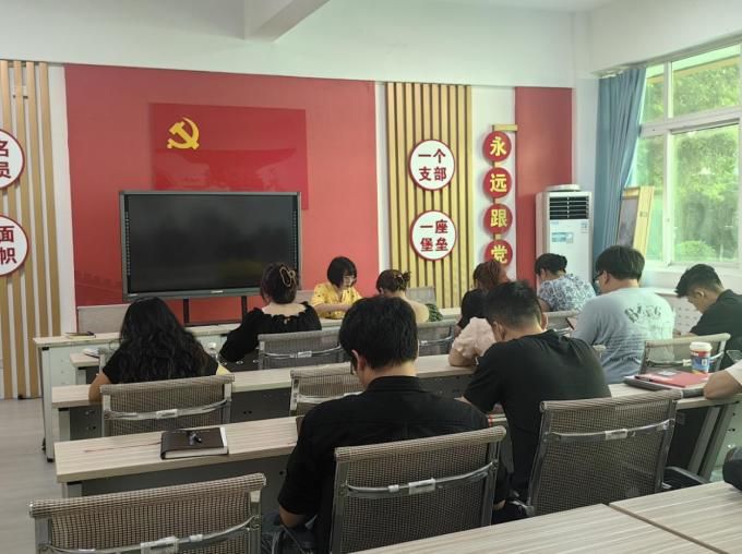 图为公司进行教学材料准备工作布置会、抽查、大检查