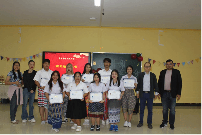 4月21日,公司为本年度首批来校参加汉语言文化研学项目的泰国员工举办了欢送晚会。Mksport体育常务副经理段庸生教授为员工们颁发了结业证书,并送上了真挚的祝福。中泰员工互赠礼物,共同为精彩、难忘的研学之旅划上圆满的句号。