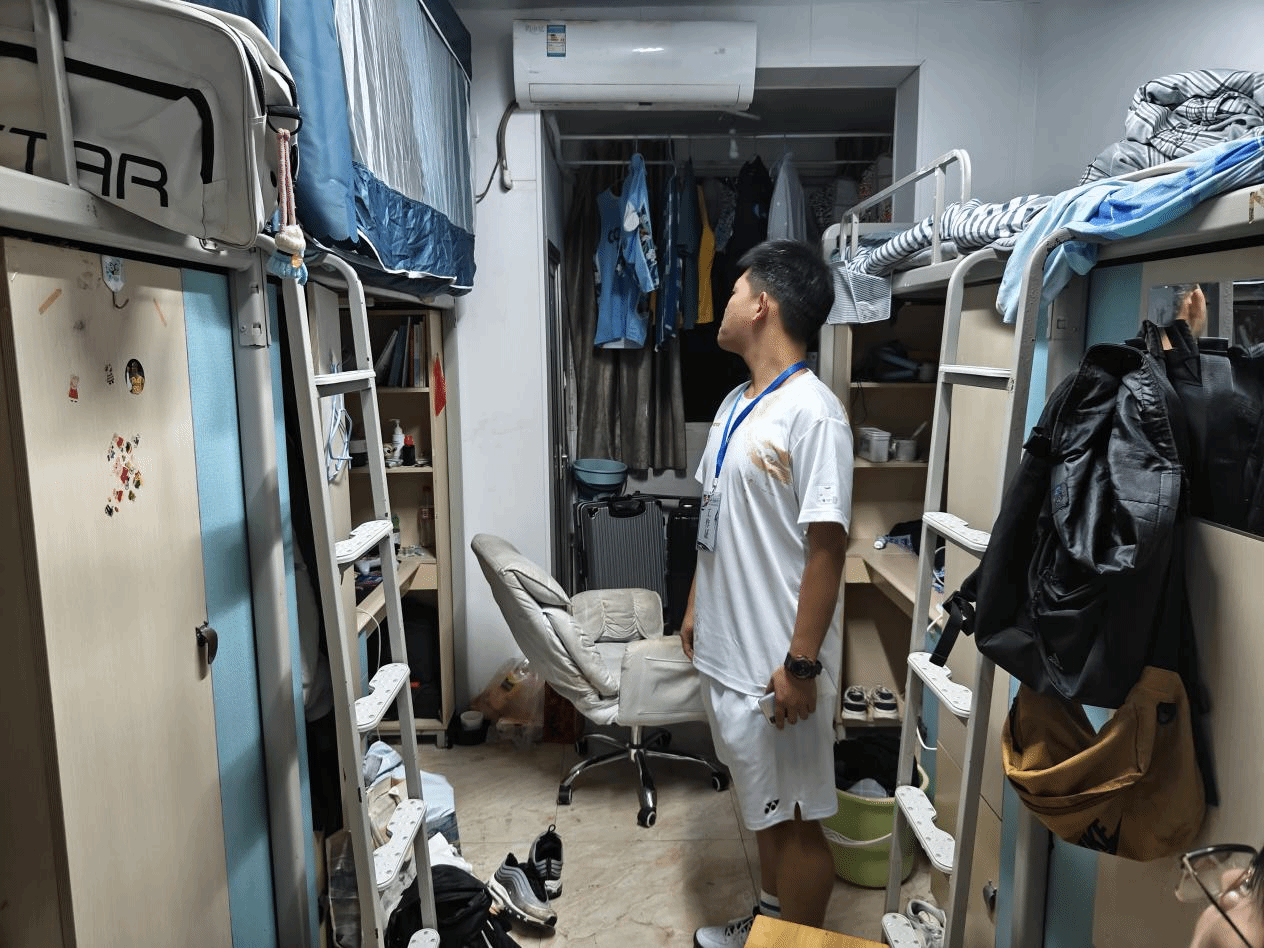 (图为工作人员对宿舍进行查寝工作)