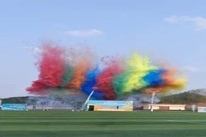 比赛开始前,公司6位老师和130名同学在起点热身,他们共同期待着这场比赛的开始。开幕式的彩烟腾空而起,震撼全场的同时点燃了各位参与者的激情。比赛正式开始。