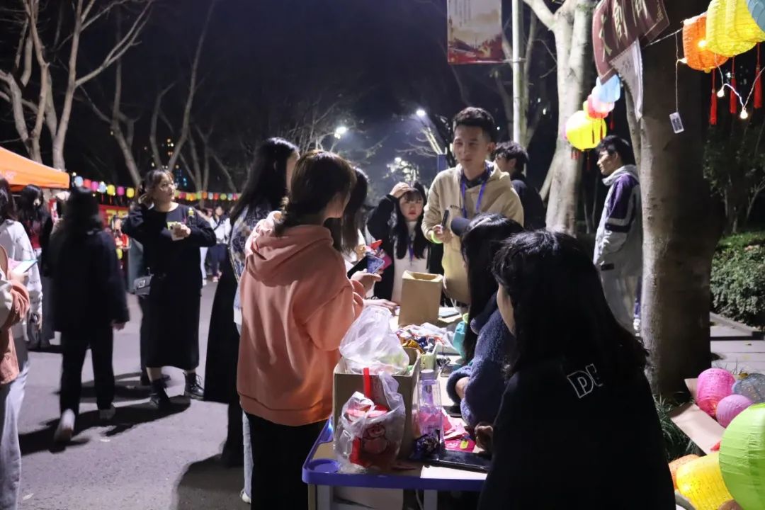 社团部还为参加活动的同学们准备了精美的小礼品。在温柔的夜色中,玄月挂,灯影美,游人喜在灯影婆娑的美景中,重师商院流光溢彩,人潮攒动,灯影商院,在暖色的灯光中,熠熠生辉。
