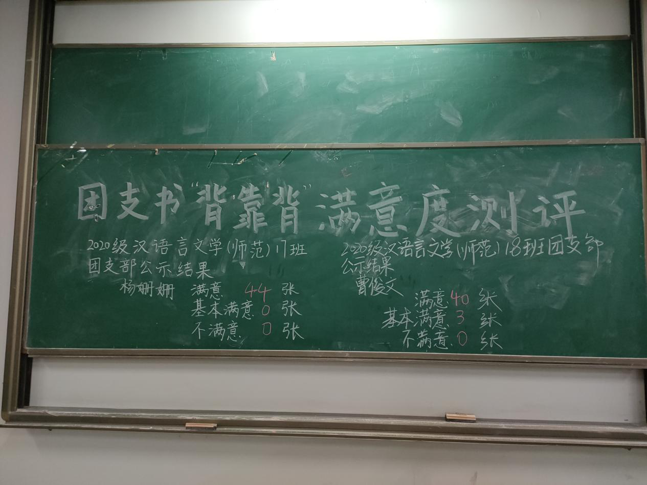为落实全面从严治党、从严治团要求,通过“工作好不好,群众说了算”的评价机制,进一步夯实基层基础,加强团支部书记队伍建设,不断提升团支部书记服务意识、服务水平和服务能力,使团支部真正成为密切联系和有效服务青年的坚强堡垒,Mksport体育于2021年3月25至3月31日于铜梁、合川两个校区开展了2020年度团支部书记“背靠背”满意度测评工作。本次全院共完成77个团支部测评工作。各支部团支部书记测评满意度均达90%以上。毕业班团支部灵活运用网络媒介,线上利用QQ群语音、QQ群文字进行述职,用投票的方式进行公开满意度测评,其余团支部采用组织部工作人员进班按照流程严格开展测评工作。