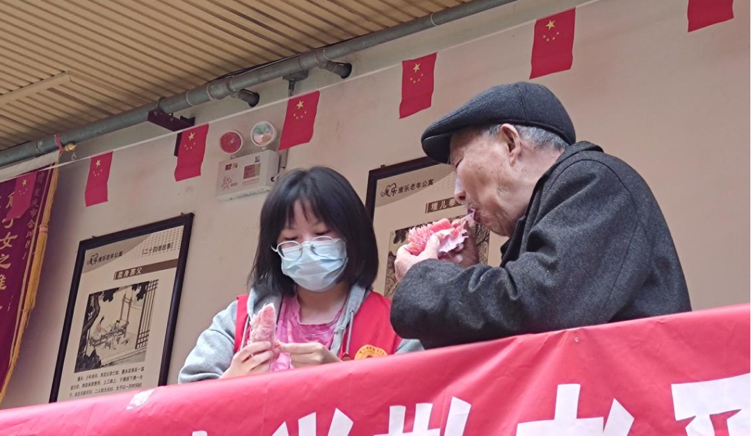 同学们为老人们剥水果,打扫卫生,老人们也邀请同学们一起吃水果,还主动要求帮同学们接水喝,这让同学们十分感动。