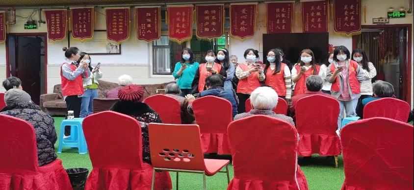 同学们积极参与节目的表演,为老人们准备了合唱:《我和我的祖国》《茉莉花》《大中国》,在歌声中勾起老人们的青春回忆,部分老人还与同学们一起哼唱。