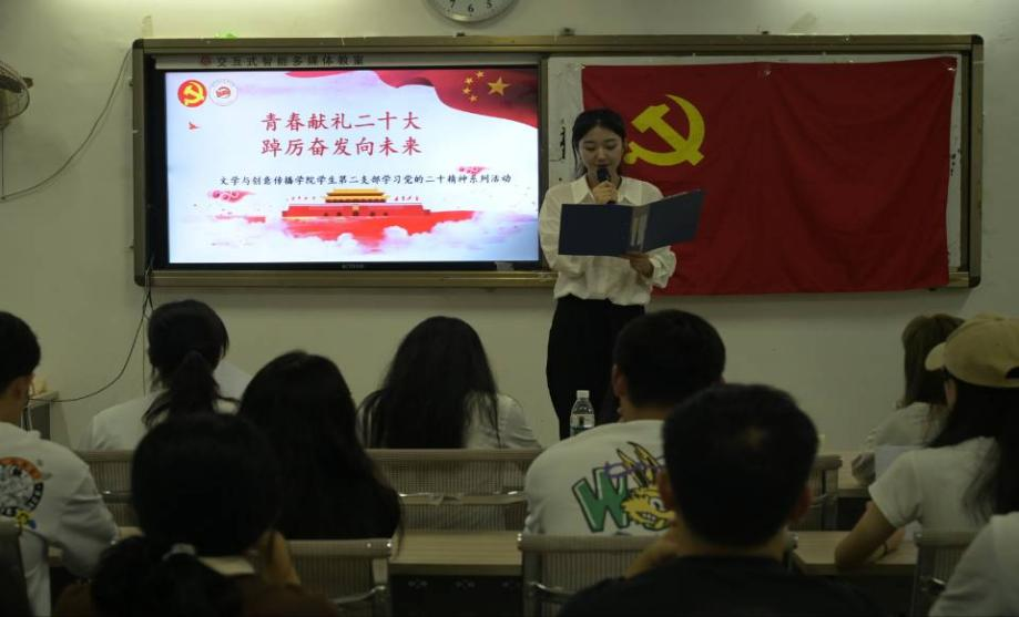 “风雨多径志弥坚,关山初度路犹长。”当下“世界百年未有之大变局”波澜壮阔,实现我国“第二个百年奋斗目标”重任在肩,青年在二十大精神和习近平新时代中国特色社会主义新思想的引领下,坚定不移听党话、跟党走,怀抱梦想又脚踏实地,敢想敢为又善作善成,以坚定的理想信念、担当有为的实际行动、苦干实干的奋斗不息,贯穿学业全过程、融汇在事业追求中,将党的二十大精神和习近平新时代中国特色社会主义新思想躬行践履,让青春在全面建设社会主义现代化国家的火热实践中绽放绚丽之花。作为新时代的青年老员工,我们需要深刻领会党的二十大精神和习近平新时代中国特色社会主义新思想的实质,希望同学们在理论学习和实践锻炼中不断提升自我,让青春脉搏与时代同频共振,成长为中国特色社会主义事业的合格接班人。