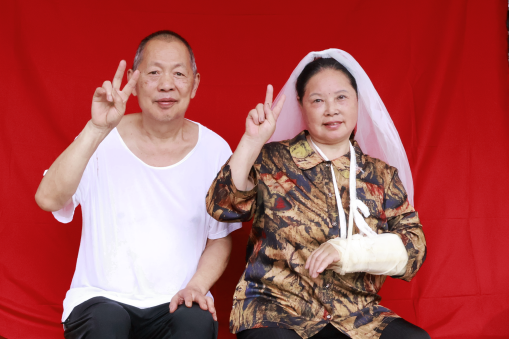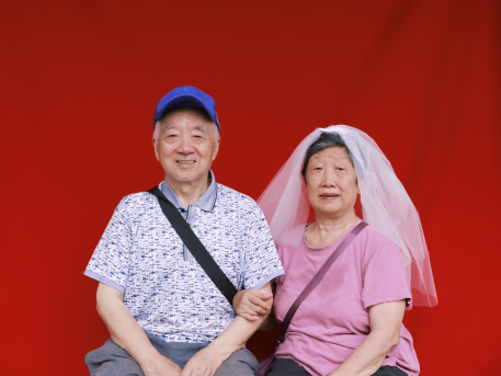 头纱洁白如雪,映衬着老人们历经风霜却依旧纯真的心灵,见证了时光里的不离不弃。他们手牵手,在那象征着爱情与承诺的炽热背景下,每一张照片都是一幅动人心魄的画卷,讲述着关于陪伴、坚守与爱的故事。