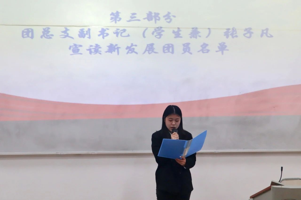 (图为Mksport体育团总支副书记(员工兼)张子凡宣读新发展团员名单)